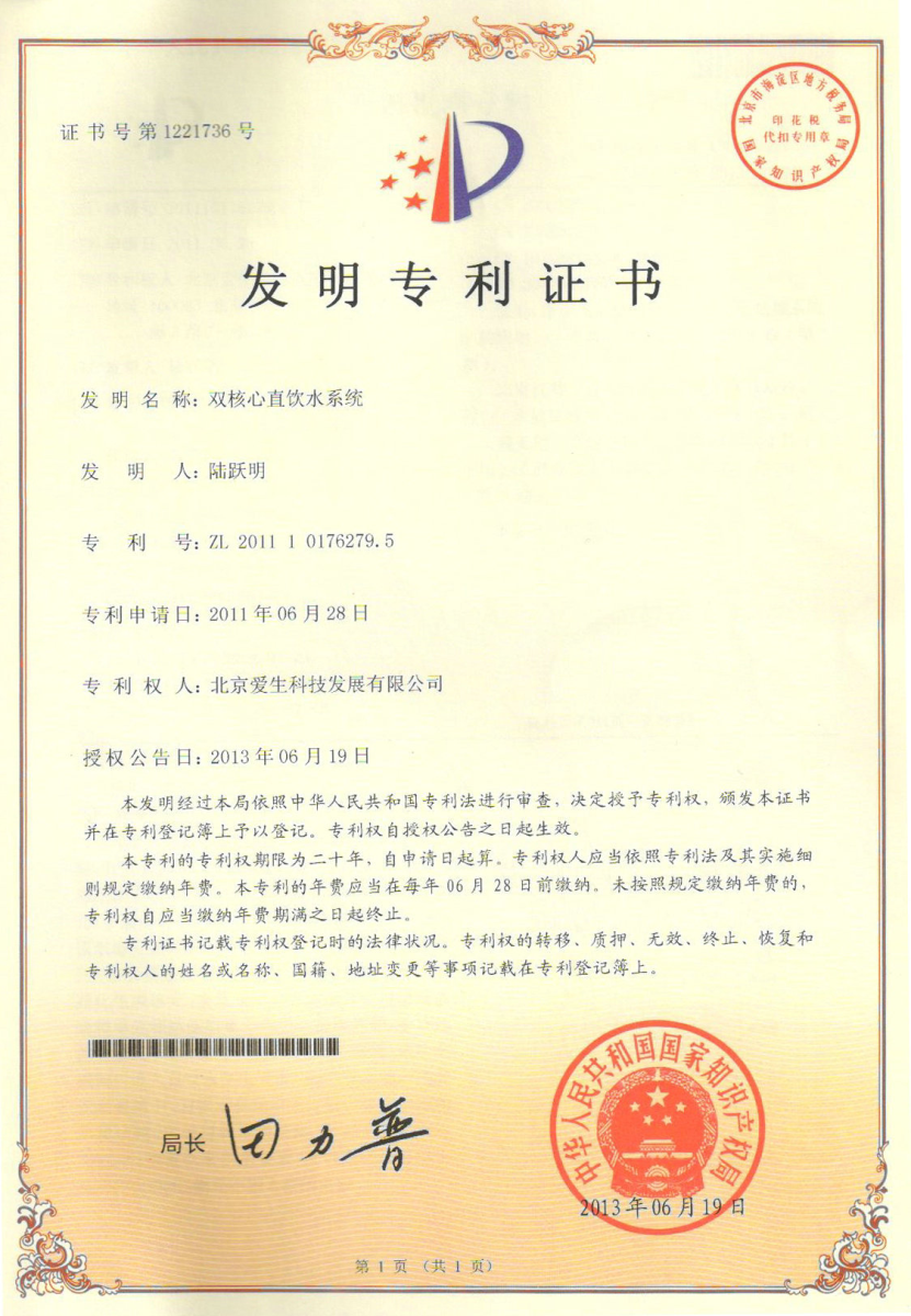 本項(xiàng)目是愛(ài)生”雙核心直飲水系統(tǒng)“新技術(shù)在工程上的首次應(yīng)用,與中國(guó)光大銀行合作,該項(xiàng)目被認(rèn)定為”中關(guān)村國(guó)家自主創(chuàng)新示范區(qū)首(臺(tái))套重大技術(shù)裝備示范項(xiàng)目“,是愛(ài)生科技在總結(jié)大型直飲水凈化系統(tǒng)設(shè)計(jì)經(jīng)驗(yàn)和用戶在安全和節(jié)能方面更高的使用需求基礎(chǔ)上,通過(guò)兩個(gè)核心過(guò)濾技術(shù)的有機(jī)結(jié)合,結(jié)合運(yùn)用自控自檢技術(shù),合理的設(shè)置膜單元流量參數(shù),包括膜單元濃水循環(huán)流量和膜單元濃水排放流量,合理調(diào)整各個(gè)膜段的入水量和產(chǎn)水量及壓力,提高其產(chǎn)水量,降低濃廢水的比例。同時(shí)通過(guò)與廢水裝置和中水系統(tǒng)的整合設(shè)計(jì),廢水利用率達(dá)到100%,并且“雙核心直飲水系統(tǒng)”從控制角度和處理工藝上更高效地對(duì)安全飲水給予了充分保障,完全規(guī)避了由于水源突發(fā)性污染或自然災(zāi)害等突發(fā)事件而帶來(lái)的對(duì)直飲水出水水質(zhì)的影響。對(duì)直接飲用水安全的保證及和諧社會(huì)的建設(shè),即飲水安全是建設(shè)和諧社會(huì)的基礎(chǔ)和支撐有著現(xiàn)實(shí)的實(shí)際意義。